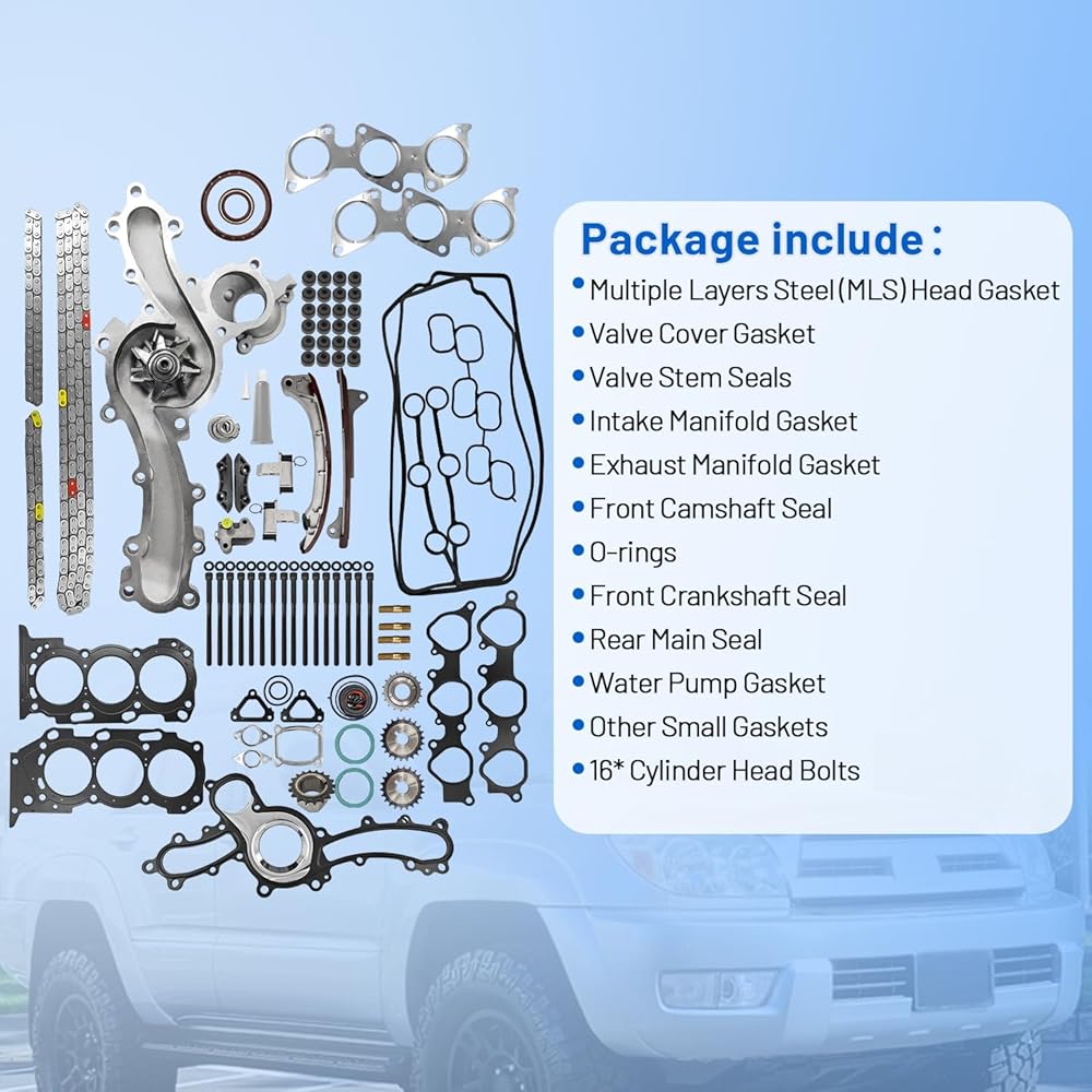 1GR-FE Head Gasket Set 4.0 with Timing Chain Kit & Water Pump Fit for Toyota 4Runner Tacoma Tundra FJ Cruiser 2003-2015 DOHC 1GRFE Replaces 1610009471 170-3940