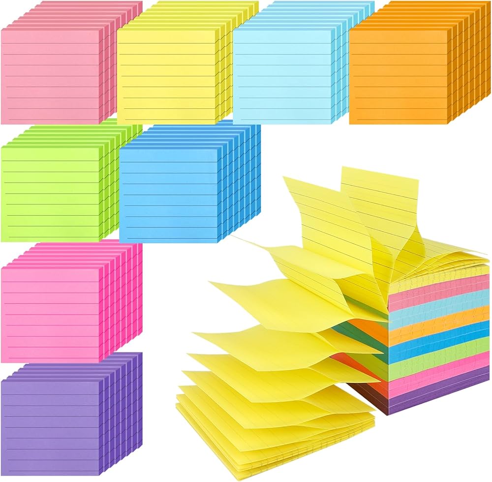 • 【64 Pack Pop Up Sticky Notes with Lines】: You will get 64 pads popup sticky notes 3x3 refills in 8 colors, each color in 8 pads. 50 sheets/pad, total 3200 sheets. Each lined sticky note measures 3x3 inch, accordion style making it easy for you to pick them up from the dispenser. Large quantity for you to use for long time or share with others