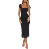 【Side Zipper & Versatile Neck】Designed for curvy ladies, this cocktail dress includes side zipper makes it easier to put on and take off. No snugging with stretchy mesh layer. Whether wear it in square neck for daily or off shoulder for formal event, this sexy dresses for women combines fashion-forward details with all-day comfort.