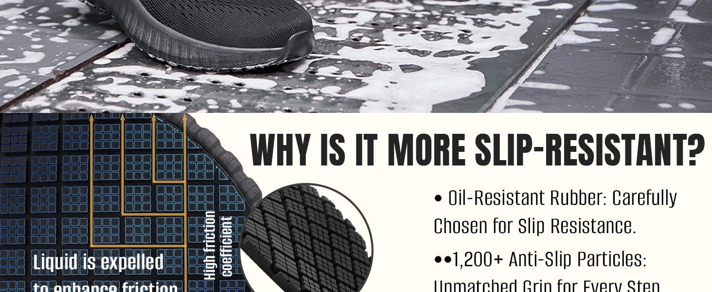 • Comfortable Foot Feel: The upper of this non-slip work shoe is crafted from special yarns, significantly enhancing comfort and durability. The smooth and luxurious texture provides an exceptional tactile experience, making these shoes ideal for frequent walkers. Designed to reduce foot fatigue, they help alleviate the stress on your feet throughout the entire workday, keeping your feet relaxed all day long.