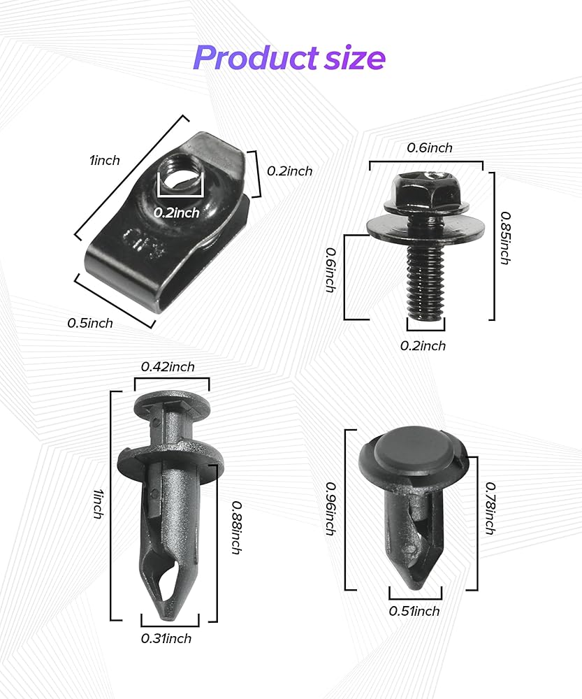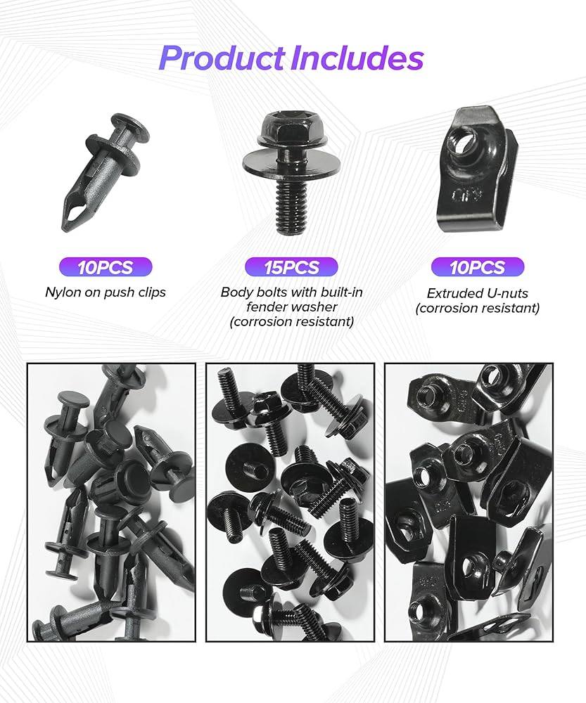 • [Practical Function]: The engine fender screws can be used to replace old or damaged fender screws. Use this reliable engine bolt to directly replace and upgrade your vehicle hardware.