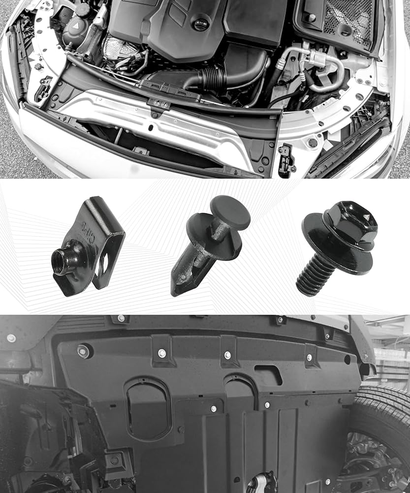 • [Material]: The engine fender screws are made of high-quality steel and aluminum materials, which are strong and durable, not easy to deform and wear, anti-corrosion and rust-proof, and have a long service life.