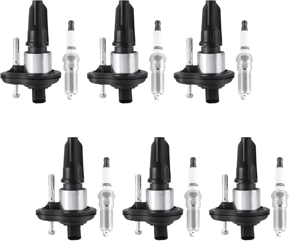 ITOM Ignition Coil Pack and Spark Plugs UF303 Compatible with Buick Rainier 2005, for Chevy Colorado Trailblazer, for GMC 2004-2006 Canyon 2003-2008, for Isuzu Ascender 2006, for Saab L6 4.2L Set of 6