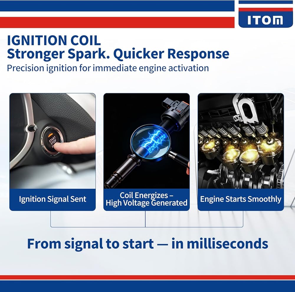 About ITOM: Each coil undergoes strict check for performance, Easy installation, plug and play. Even after a long period of use, the ignition coils remain in a stable working condition with low replacement frequency and maintenance costs