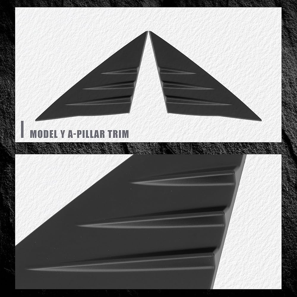 A-Pillar Trim Triangle Window Sticker Compatible with 2020-2025 Tesla Model Y, a Pair of Driver and Passenger Side Trim ABS (Matte Black)