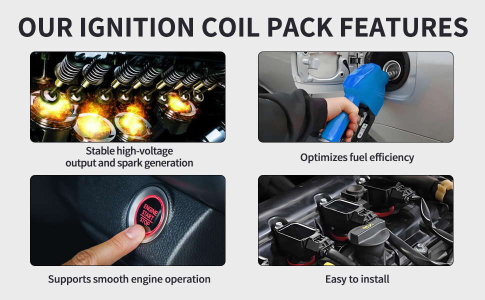 Key Functions: Ignition coil delivers high voltage to the spack plugs, ensuring reliable ignition and stable engine performance. It plays a critical role in addressing issues like misfires, stalling, and backfiring, improving fuel efficiency, and restoring optimal engine power. Designed to enhance combustion and maintain smooth operation, it ensures long-lasting performance and peak functionality under various conditions