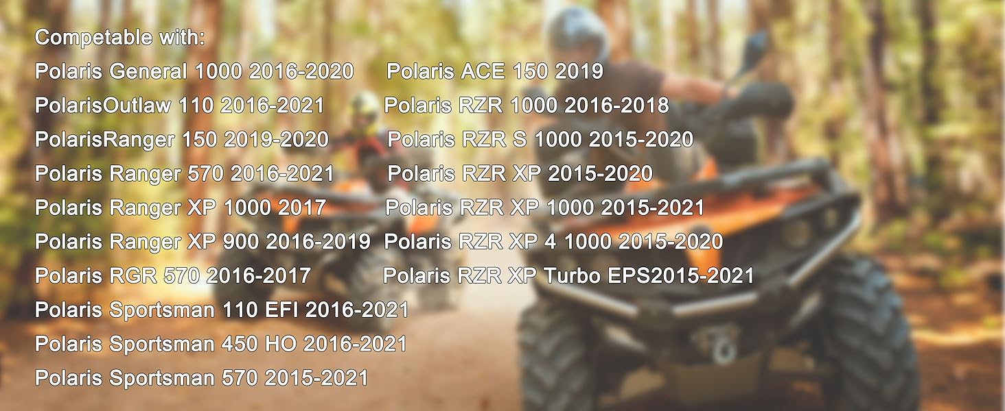 【Applicable models】Polaris Sportsman 570 2015-2021;Polaris Sportsman 450 2016-2021;Polaris RZR XP Turbo 2015-2021;Polaris RZR XP 4 Turbo 2016-2017 2020-2021;Polaris RZR XP 1000 2015-2019;Polaris RZR XP 2015-2020; Polaris Ranger Series.