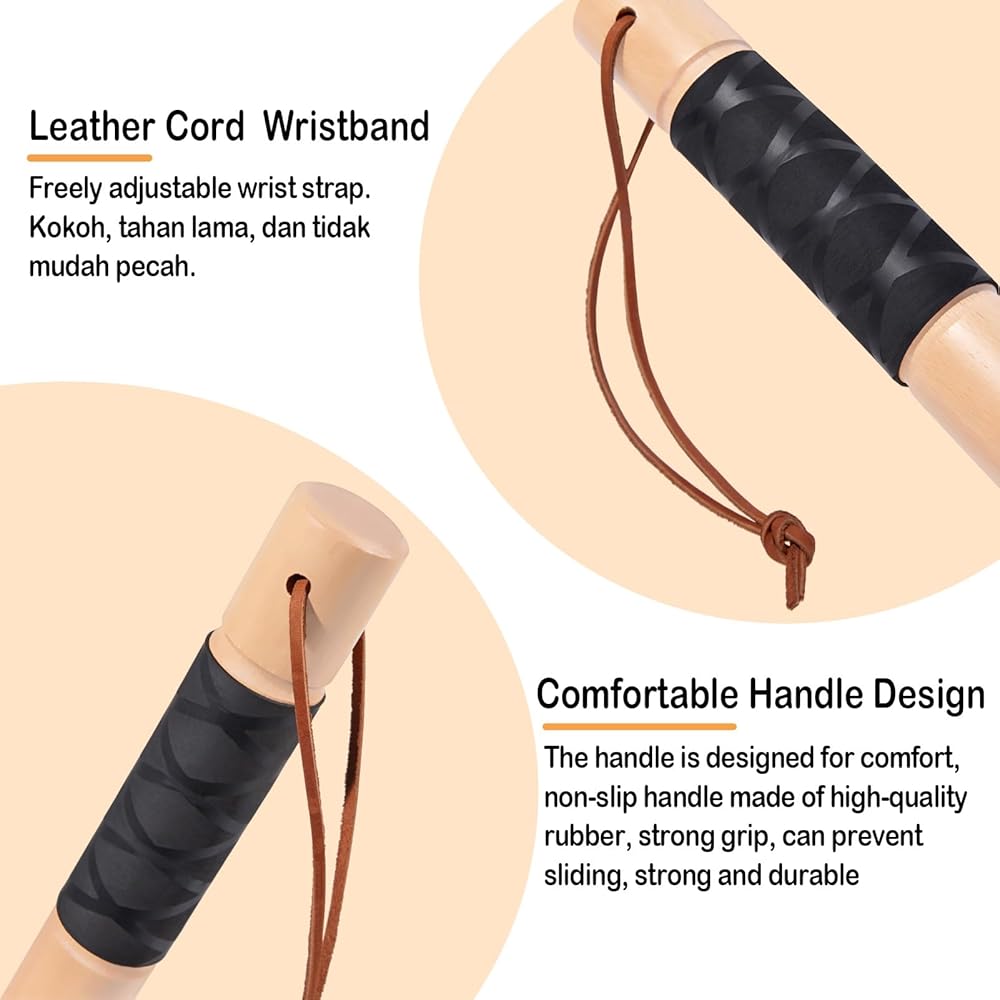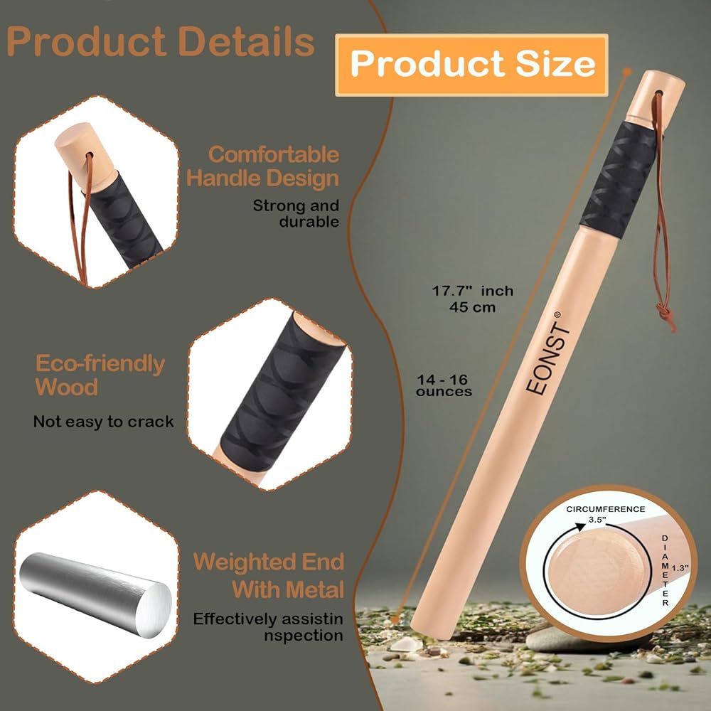 ●Premium Solid Wood and Metal Build:Handcrafted from durable solid wood with a polished, chip‑resistant finish and a weighted metal bolt end. Designed for lasting reliability and a comfortable, secure grip in any condition.