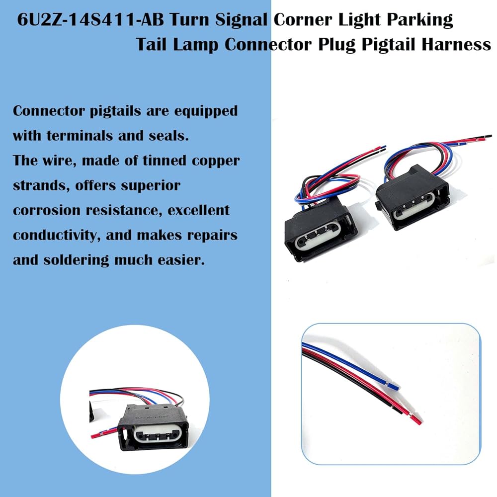 • EASY INSTALLATION: It can be direct replacement, designed to directly replace your old Turn Signal Corner Light Parking Tail Lamp Connector Plug Pigtail Harness