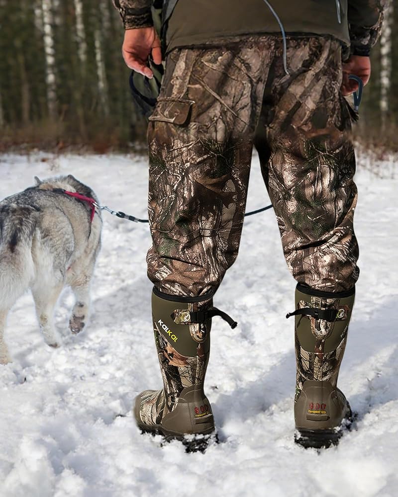 👣100% WATERPROOF: KALKAL waterproof boots for men feature durable neoprene and soft rubber construction, achieving 100% waterproof performance. Keep your feet dry and comfortable all day long, allowing you to focus entirely on your hunt with complete peace of mind.