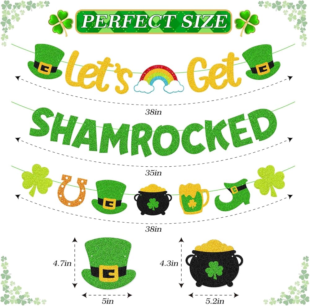 Let's Get Shamrocked Banner Size: About 38" in length x 3 garlands, offering an eye-catching display for any irish-themed parties setting.