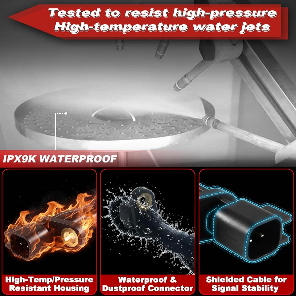 【Excellent Waterproof Protection – IPX9K Tested】Speed Sensor passed high-pressure, high-temperature water jet tests under IPX9K standards. Reliable in rain, mud, or car wash conditions.