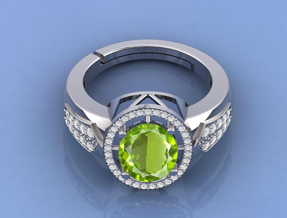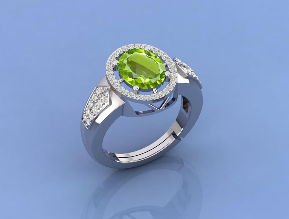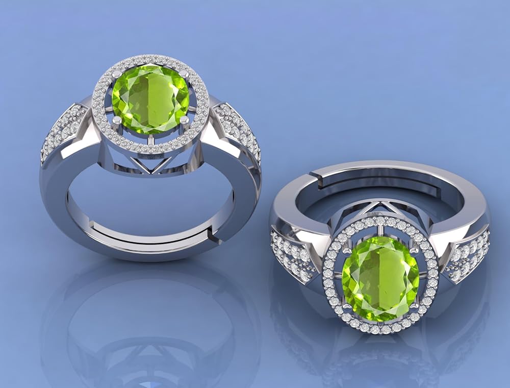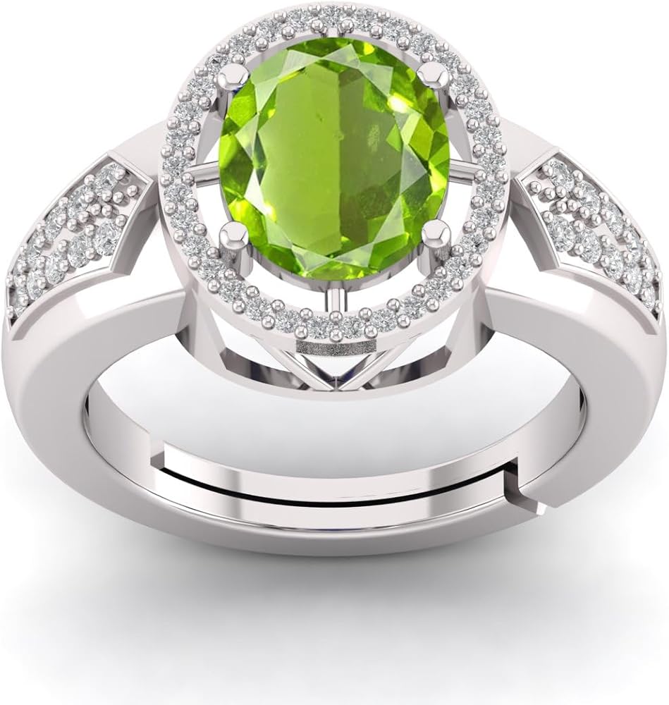 DINJEWEL 4.00 Carat Natural Green Emerald Gemstone May Birthstone Silver Plated Adjustable Ring For Women And Men