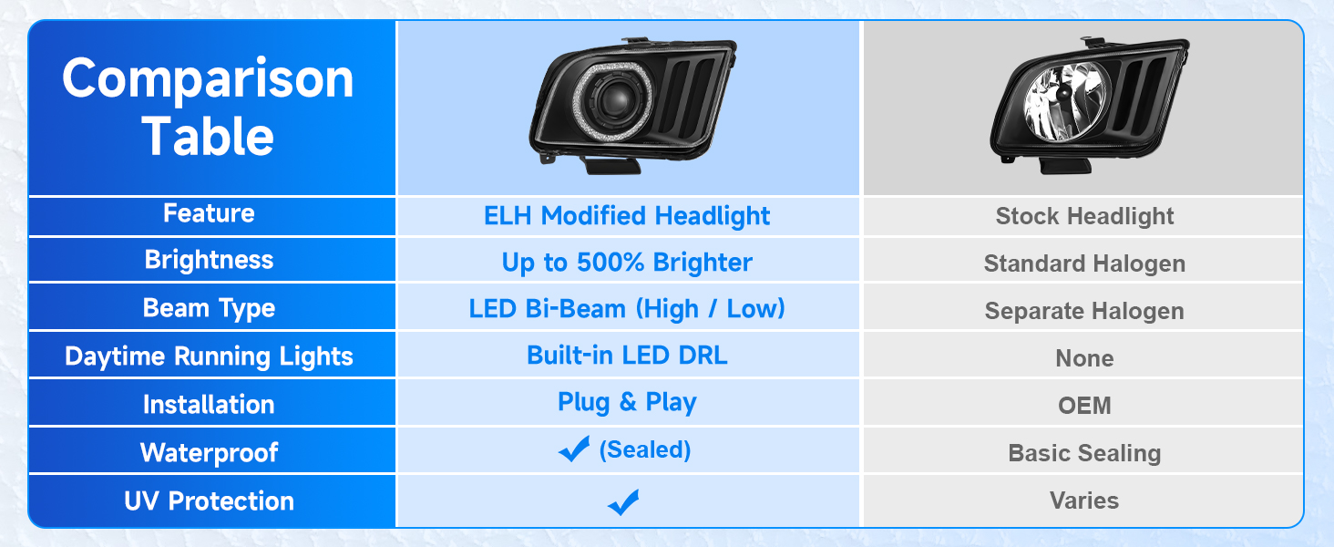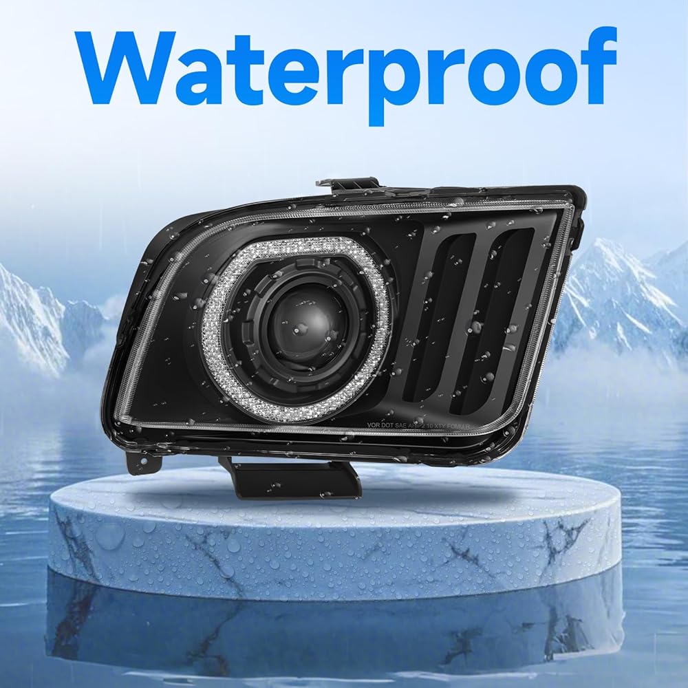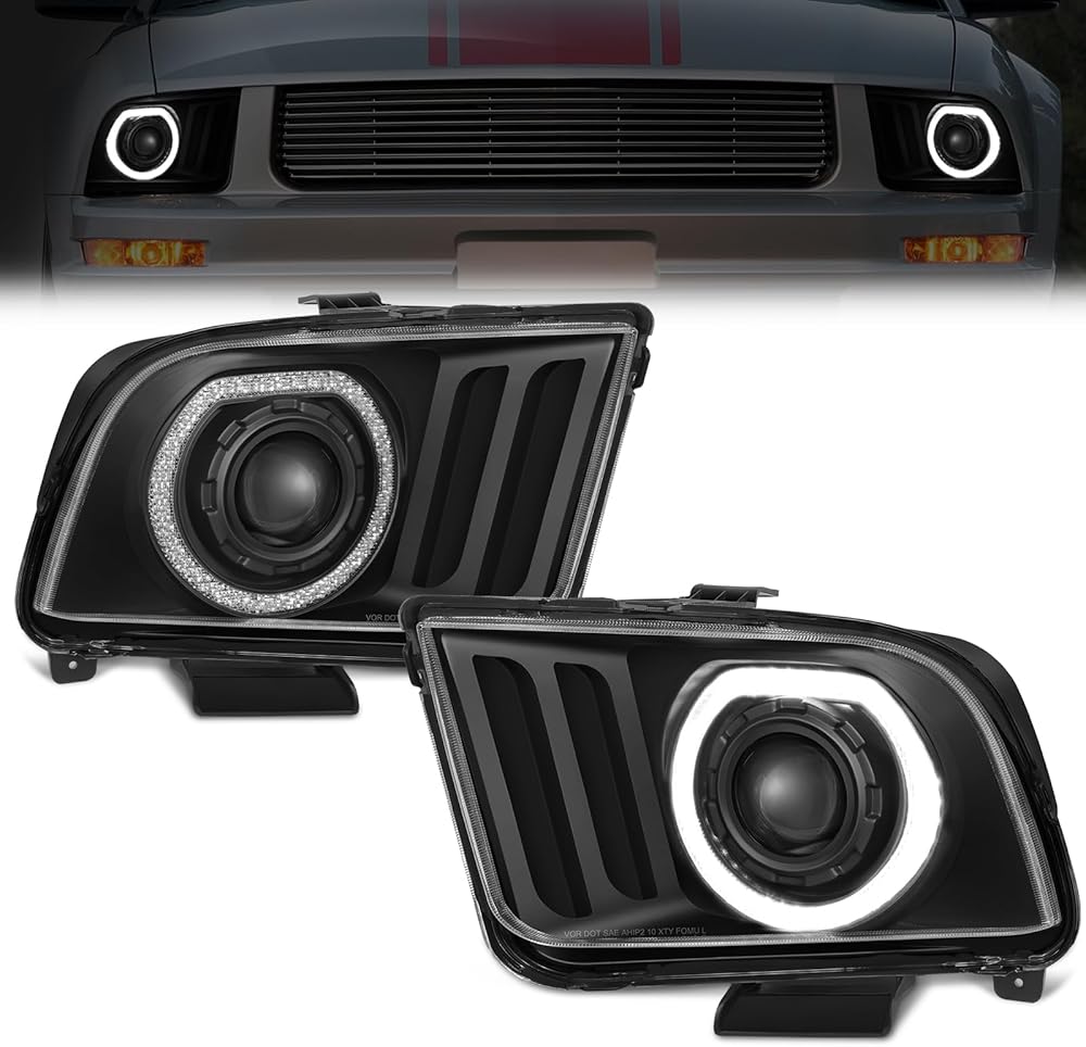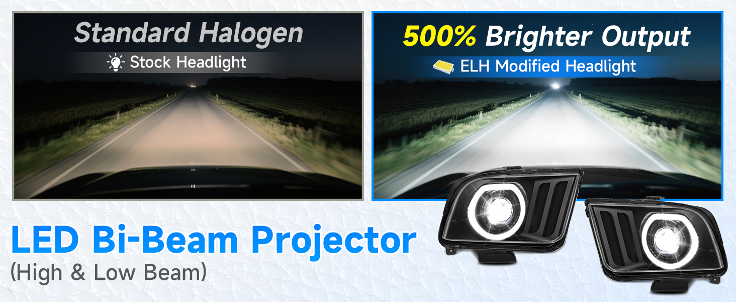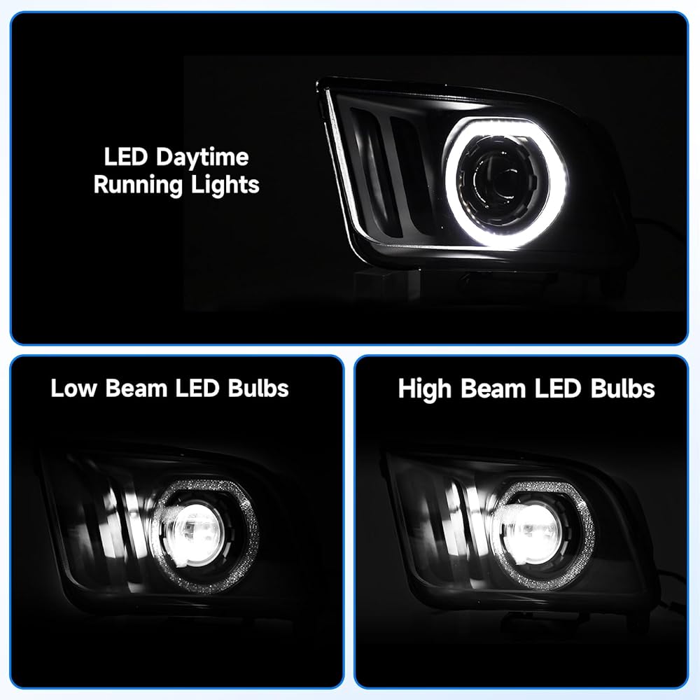 ELH LED Projector DRL Headlight Assembly Fit For 2005-2009 Ford Mustang LED 2005 2006 2007 2008 2009 05 06 07 08 09 Mustang Headlamp