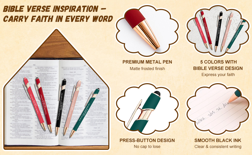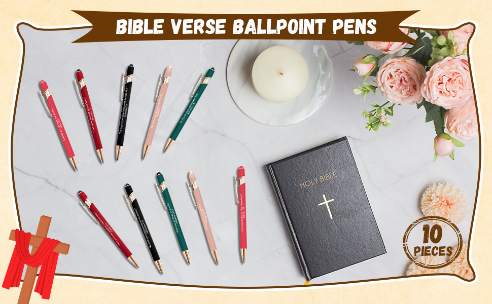 Inspirational Bible Verse Pens, Each pen is printed with uplifting Bible verses, offering encouragement and faith every time you write, study, or take notes.