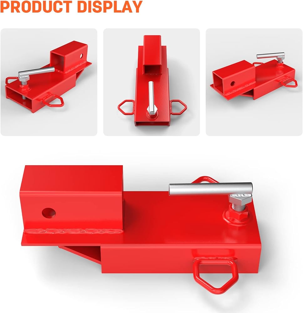 Universal Fitment for Forklifts: This clamp on forklift hitch receiver is the ultimate trailer hitch adapter for forklift, designed as a versatile pallet fork ball hitch; Fits forks up to 4.33" width and 1.3" thick and accommodates any standard 2" hitch receiver; Whether you need a forklift 2" ball, a ball hitch for forklift forks, or a forklift trailer ball attachment, this forklift hitch mount serves as the perfect forklift attachment for ball; It's an essential trailer hitch for forks for industrial, agricultural, and construction use, functioning as a reliable forklift trailer adapter