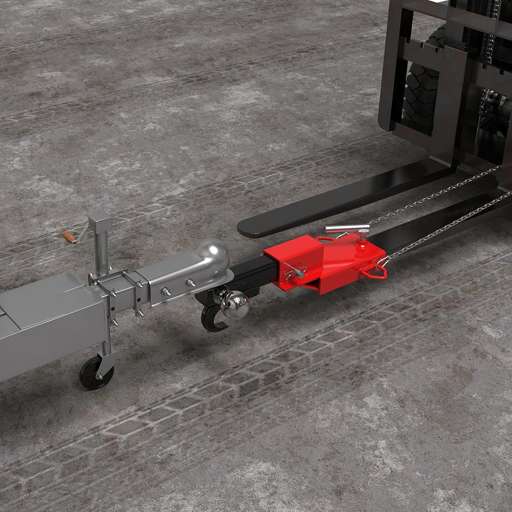 Heavy-Duty Construction & 3000-lb Capacity: Engineered for power, this forklift fork ball hitch is built with high-strength steel and a rust-resistant powder-coat finish; As a robust trailer hitch for forklifts, it boasts a 3000-lb capacity, making this forklift trailer hitch adapter strong enough for moving boats, RVs, and heavy equipment; The forklift receiver hitch includes a durable safety chain, ensuring your forklift tow hitch attachment and fork trailer hitch attachment operations are secure and reliable