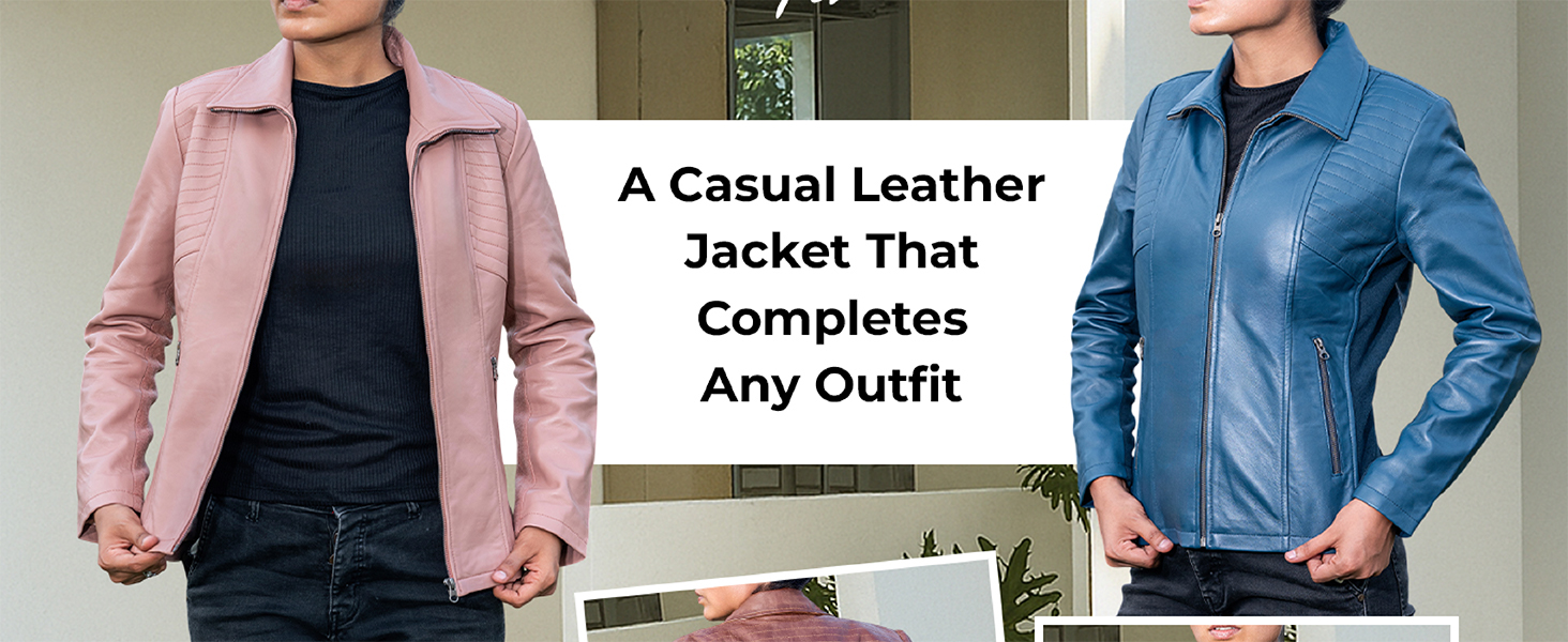Genuine Leather Jacket Build: This genuine leather jacket is crafted from lambskin leather for a premium, long-lasting finish that's soft yet durable, perfect for daily wear with a luxurious touch.
