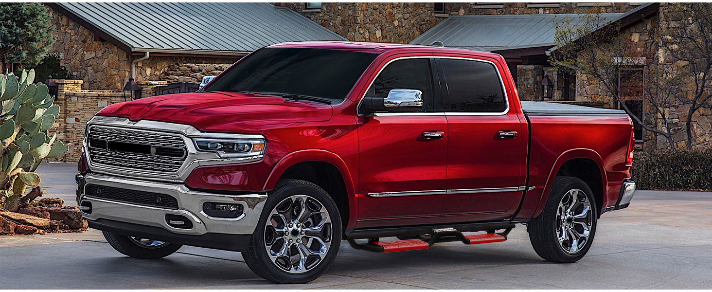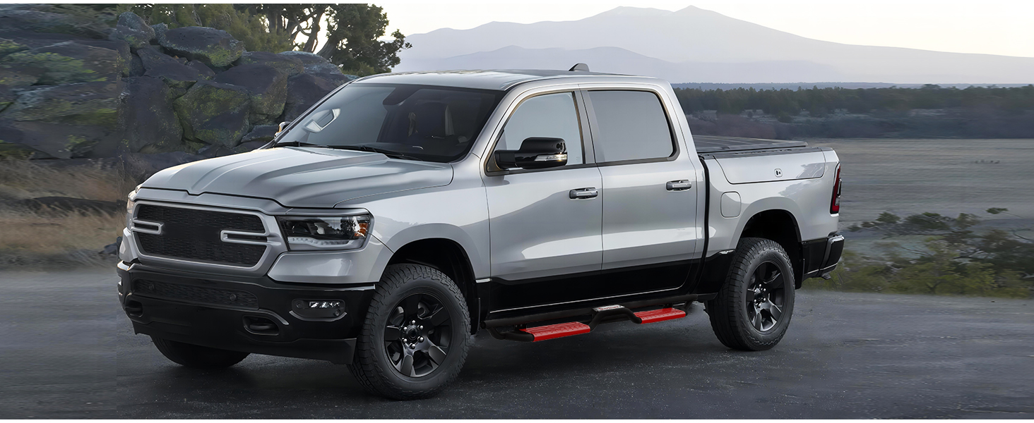 Materials: These running boards for the Dodge Ram Crew Cab are constructed of heavy-duty carbon steel with a weight capacity of up to 550 lbs. and a unique powder-coated finish that provides superior rust and corrosion resistance, ensuring long-lasting performance even in harsh weather conditions