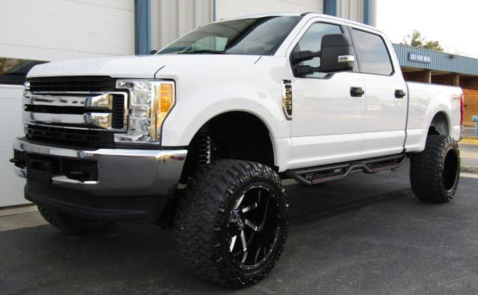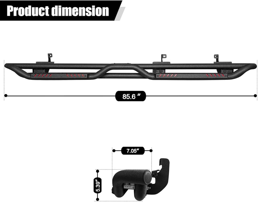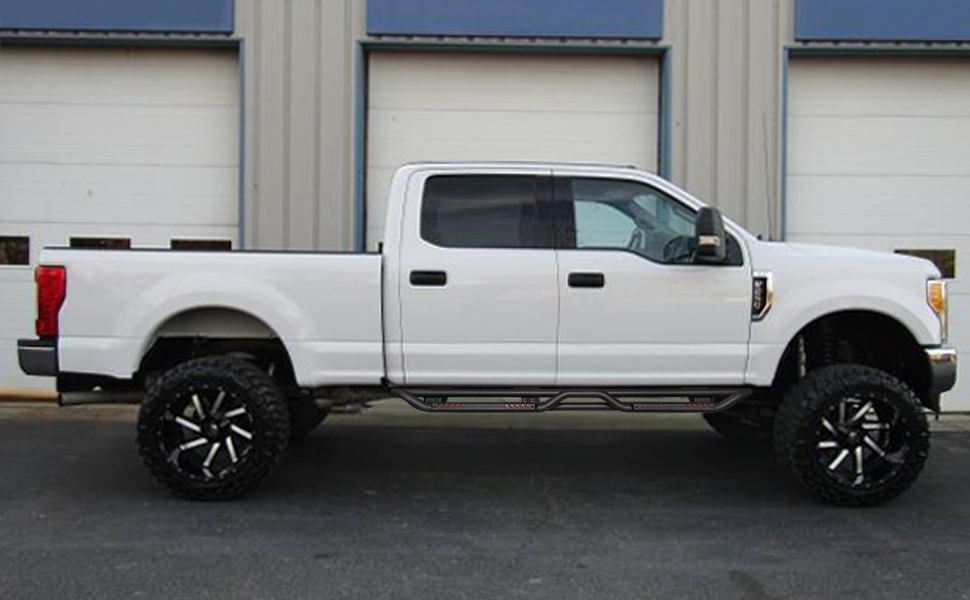 [Design Effect]: Excellent side and chassis protection. Step rails are equipped with durable non-slip step pads for easy entry and exit of your truck. Each step can support up to 350 pounds