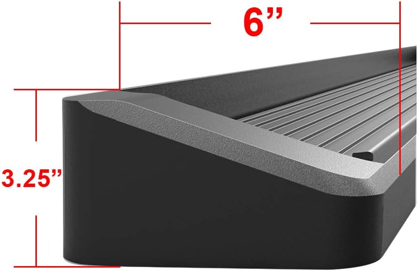 Heavy Duty 6-inch Wide Running Boards with Raised Ends that Act as Mud Guards