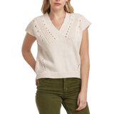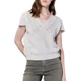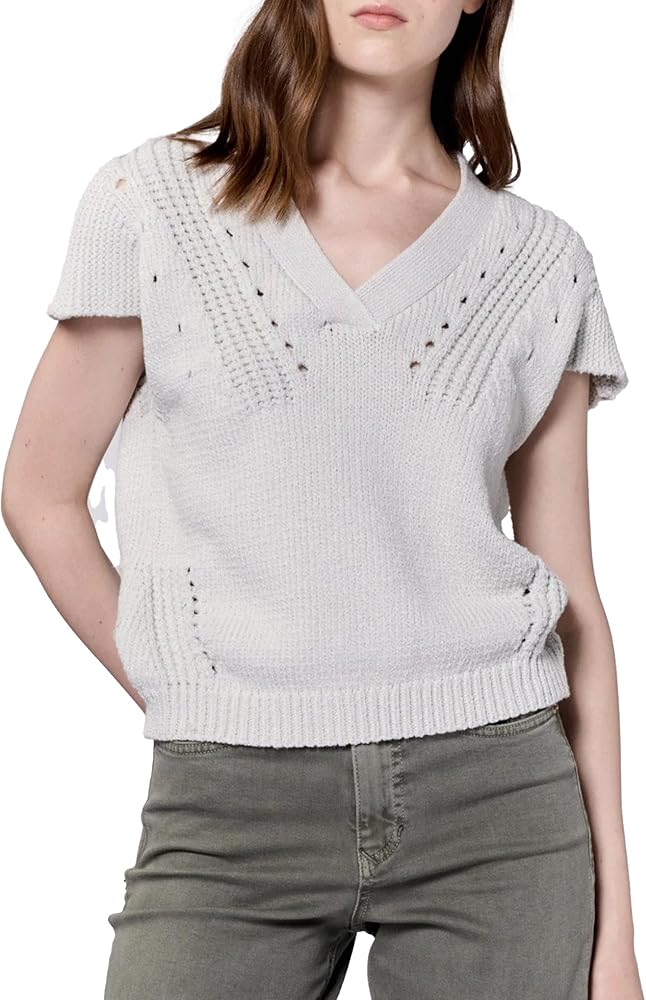 The Una sweater features a timeless V-neckline and sleeveless, relaxed fit design, combining chic sophistication with comfort. The Pearl Heather shade enhances its versatile and elegant appeal.