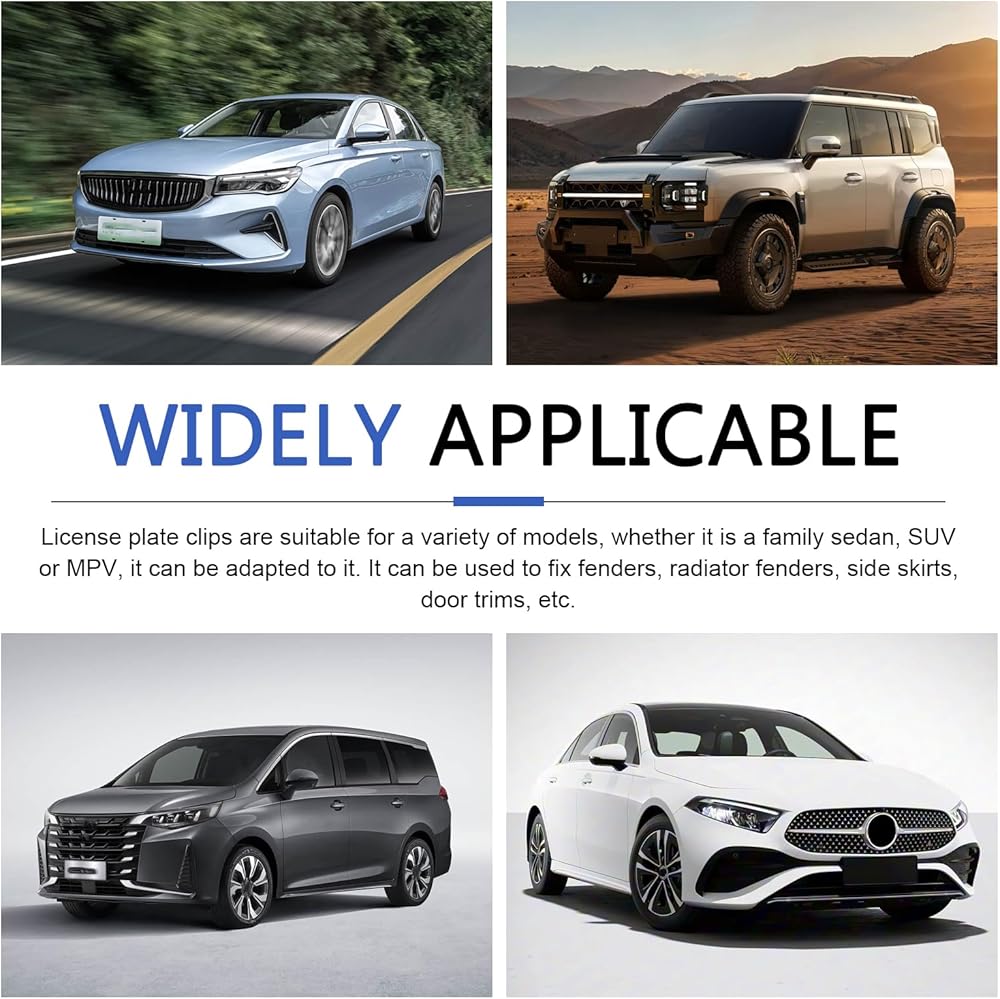 Wide Compatibility: The bumper plate fasteners fit various vehicle models, including sedans, SUVs, and MPVs. They can also secure components like fenders, radiator grilles, side skirts, and door trim panels.