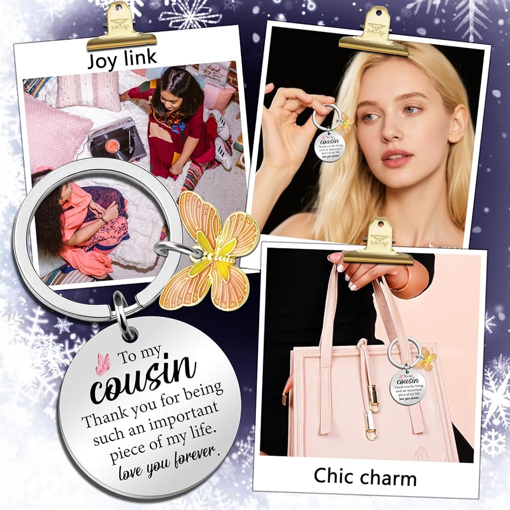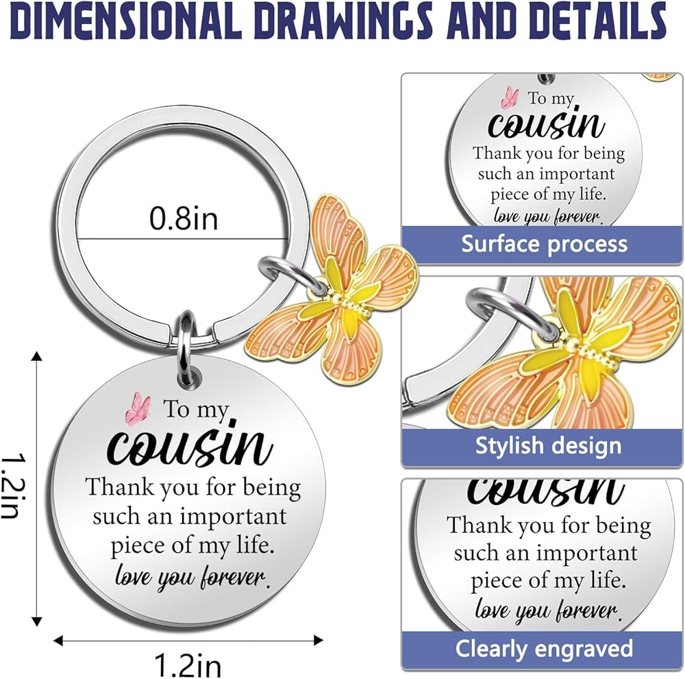Cousin Keychain: Ideal as cousin gifts for women, cousin birthday gifts for women. Whether she's your cousin by blood, a close confidant, or an older cousin you look up to, this keychain is the best gift. It's a meaningful present to show your appreciation for her, the shared laughter, and the countless memories you've created together.