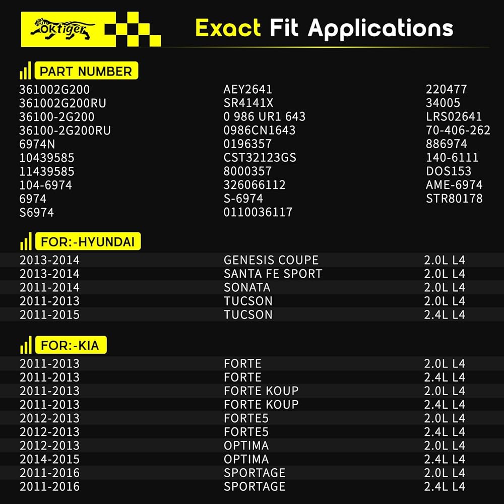 Oktiger New Starter Motor Fit for Hyundai Sonata 2011-2014, Santa Fe Sport 2013-2014, Tucson 2011-2015, for Kia Optima 2012-2015, Forte 2011-2013 L4 2.0L 2.4L 12V 1.2KW, OE:361002G200, 6974N (All New)