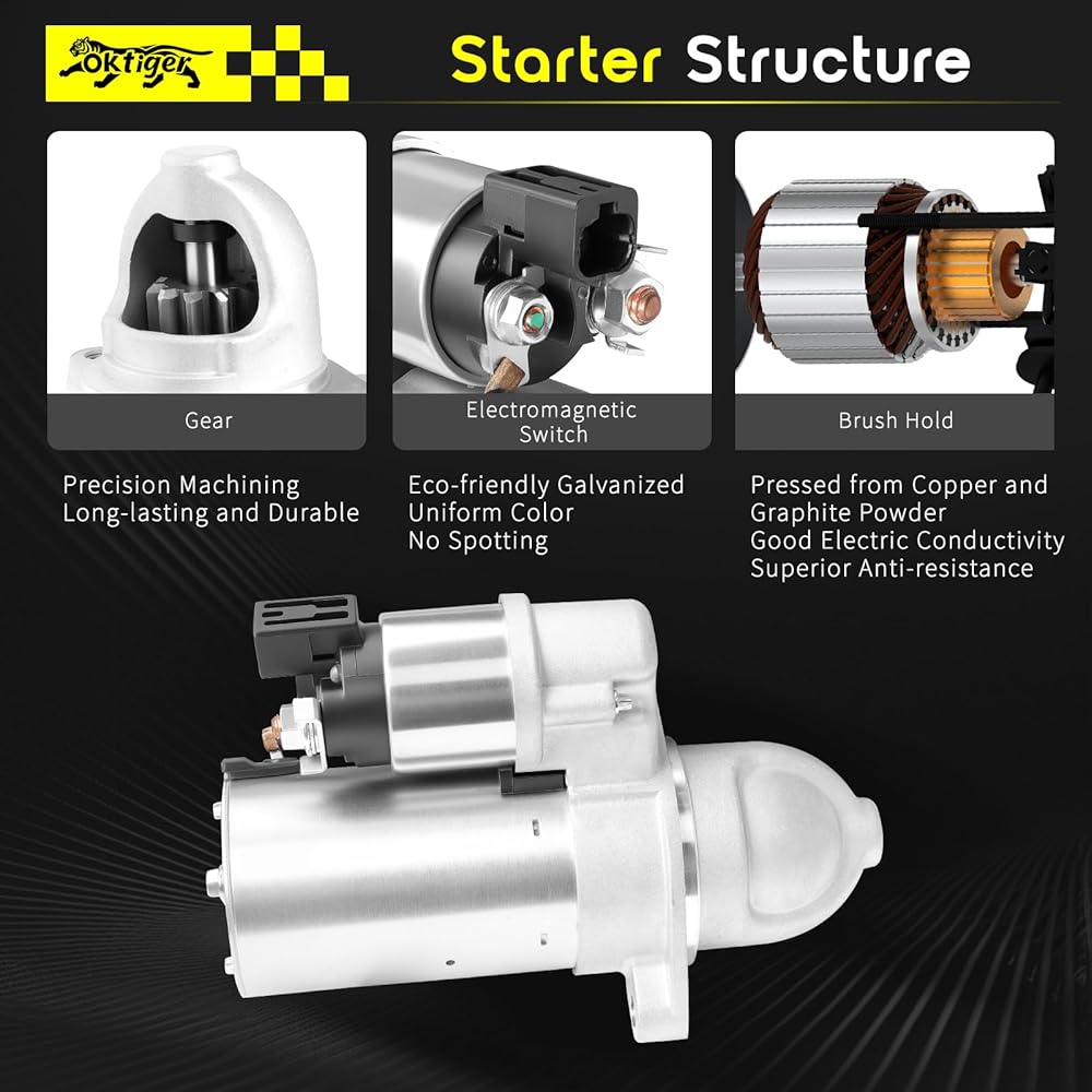 ✅【Precision Design Performance】: Oktiger starter adopting a corrosion-resistant housing design, it can adapt to complex working conditions and ensure long-term reliable operation of the starter; the durable copper sleeve effectively prevents output shaft deviation, and the starting gear matches the flywheel perfectly to avoid starting failures. Each starter has passed 100% computerized load and power testing, suitable for a variety of vehicle models, supported by precision manufacturing, easy to use.✅