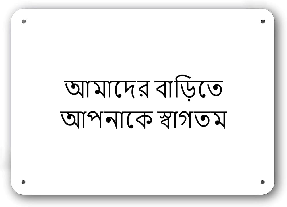 Door Sign - Welcome to Our Home in Bengali Language - Decorative White Aluminum