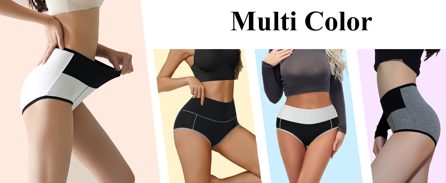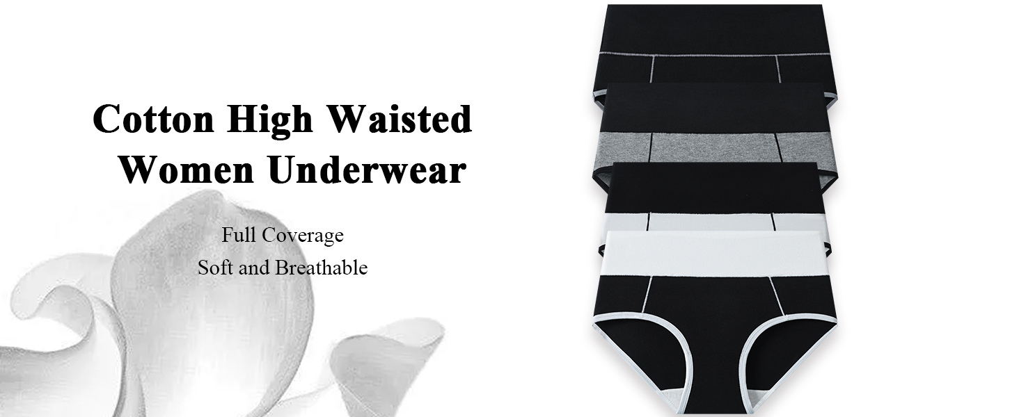 STRETCHY FABRIC COVERED WAISTBAND: Full coverage underwear, Soft stretchy Double-Layer fabric covered waistband that stays in place at the waist. No rolling or bunching, not too tight or loose but perfectly snuggish. This high waisted underwear offers moderate tummy support and reduces the appearance of a muffin top. These panties are nice for tummy control and feature full back coverage, which shows off the hips nicely.