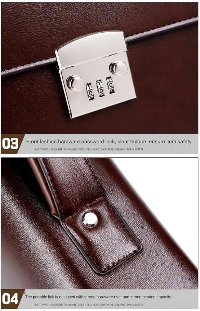 • Unique design: This briefcase has a retro and exquisite appearance, with a code lock design, and can be used as a work bag, laptop bag, lawyer briefcase, administrative briefcase, etc.
