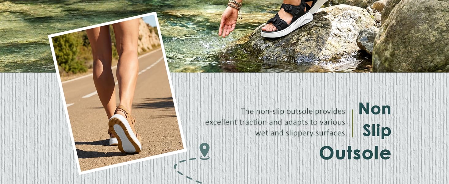 Anti-Slip Outsole for Sport & Outdoor Activities: Featuring a rubber and EVA outsole with textured grip patterns, these sandals deliver reliable traction on wet or uneven surfaces. Great for poolside walks, light hiking paths, or casual sport activities during vacation.