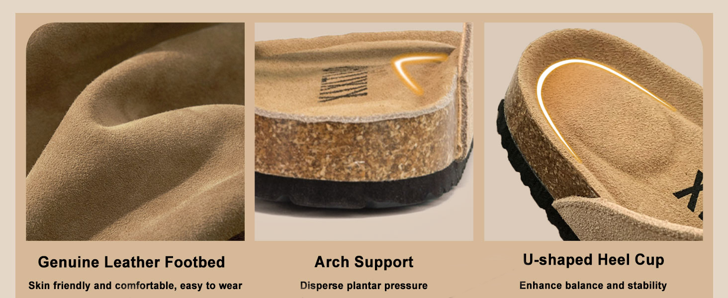 2. The contoured cork footbed in these Flat Sandals provides gentle arch support that molds to your foot's natural curve, reducing fatigue during long walks or commutes. Its shock-absorbing cushioning makes these Sandals for women ideal for all-day wear, whether you're running errands or exploring the city.