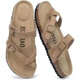 1. The sandals women feature a soft, premium suede upper with a crisscross strap design that delivers a retro, textured look. Unlike traditional double-strap designs, this sandals incorporates some thoughtful details, giving it a more refined looks. The adjustable metal buckles let you fine-tune the fit to comfortably accommodate narrow, wide, or high-instep feet, ensuring the women's flat sandals stay securely in place all day.