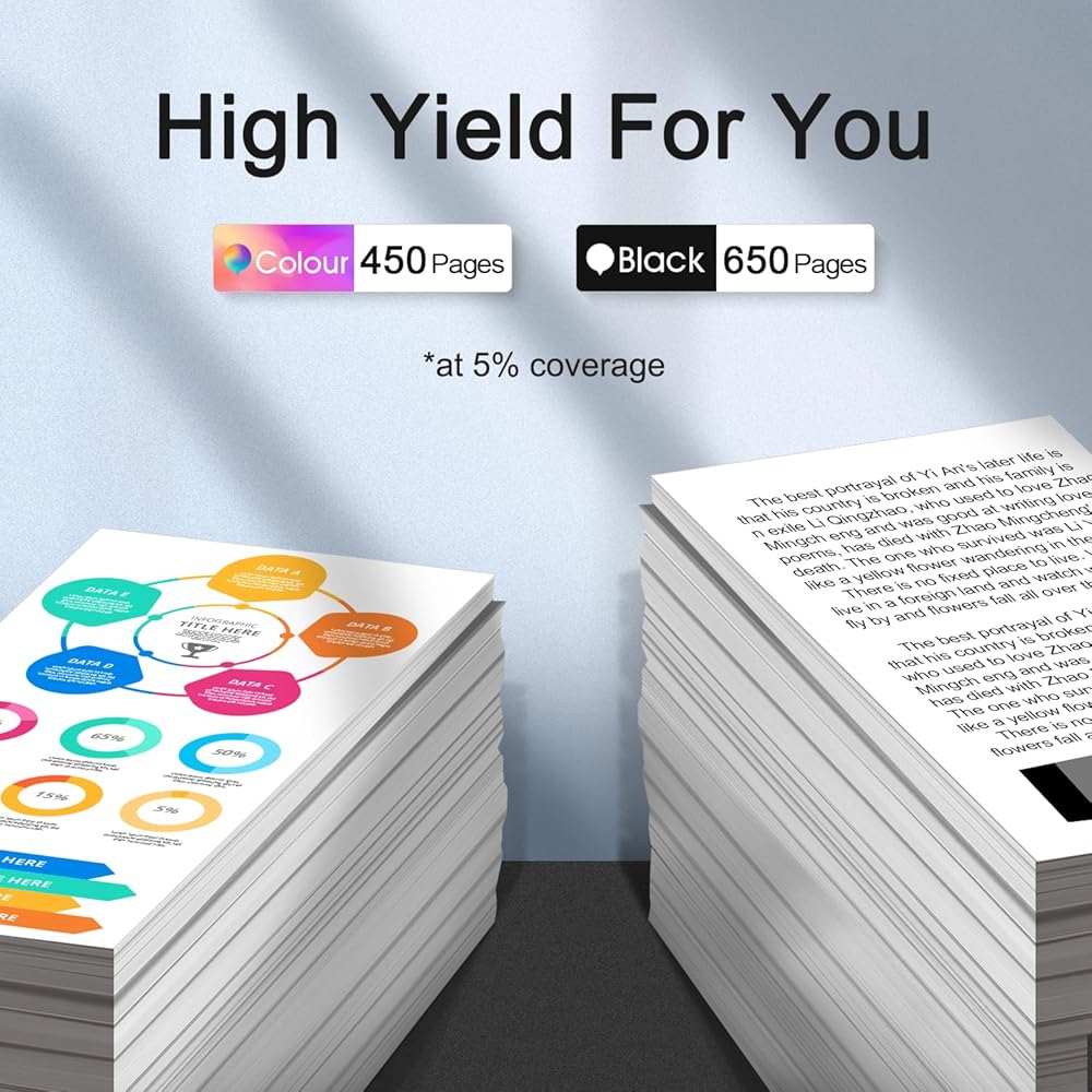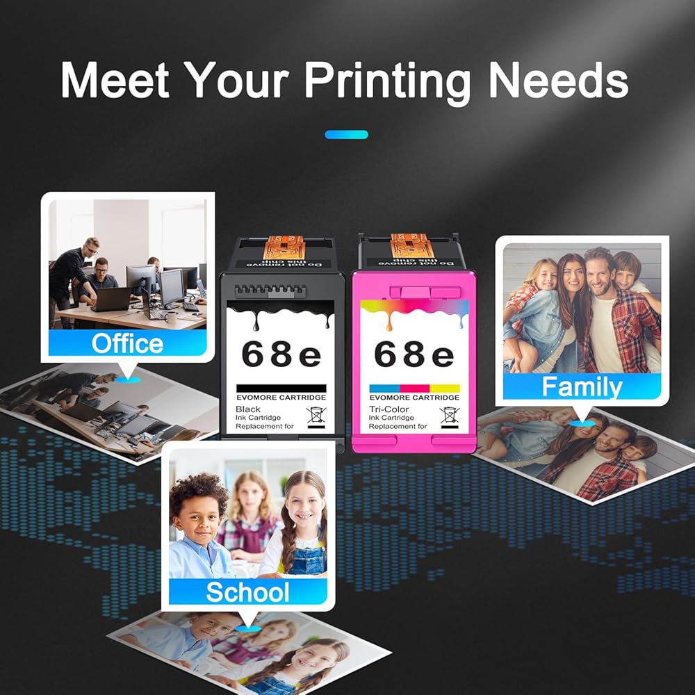 High Page Yield: Up to 650 pages per 68XL Black Ink Cartridge, 450 pages per 68XL Tri-Color Ink Cartridge(5% coverage)