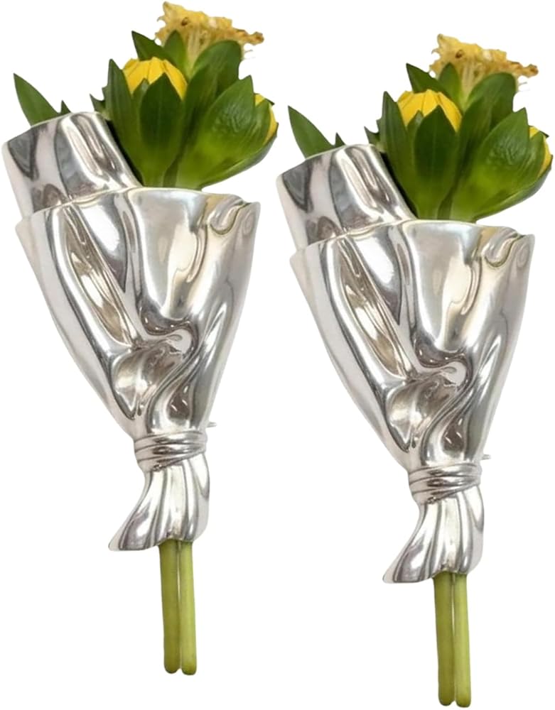 2Pcs Artful Alloy Flower Bouquet Vase Brooch - DIY Wearable Floral Lapel Pin for Women, Luxury Silver Clothing Accessory for Jacket Dress Coat, Perfect Prom Wedding Mother's Day Gift