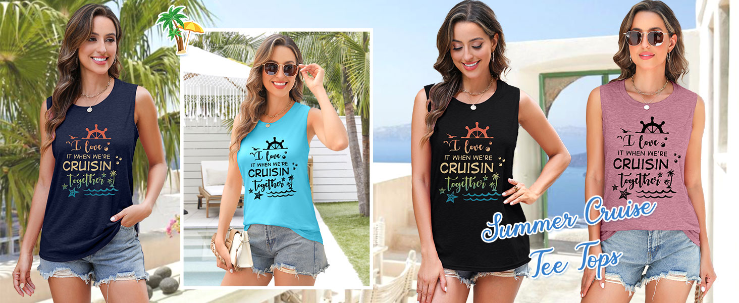 OCCASION : Our Cruise Tank is perfect for every beach occasion.Whether you're planning a Hawaii vacation, beach bachelorette party, family getaway, or tropical resort trip, this beach tank top is your go-to choice.The beachy tops is a good chioce for cruise days, poolside lounging, music festivals, or casual summer outings.