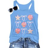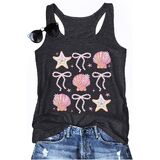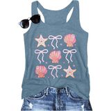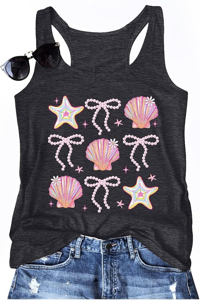 MATERIAL: Size - S=US(4-6), M=US(8-10), L=US(12-14), XL=US(16),XXL=US(18-20).Our beach tank tops for women is made of 60% Cotton, 35% Polyester, 5% Spandex, which is super soft, comfortable and breathable. The seashell sleeveless shirt is high-quality, durable fabric will last through many wears and washes and support to hand wash or machine wash.