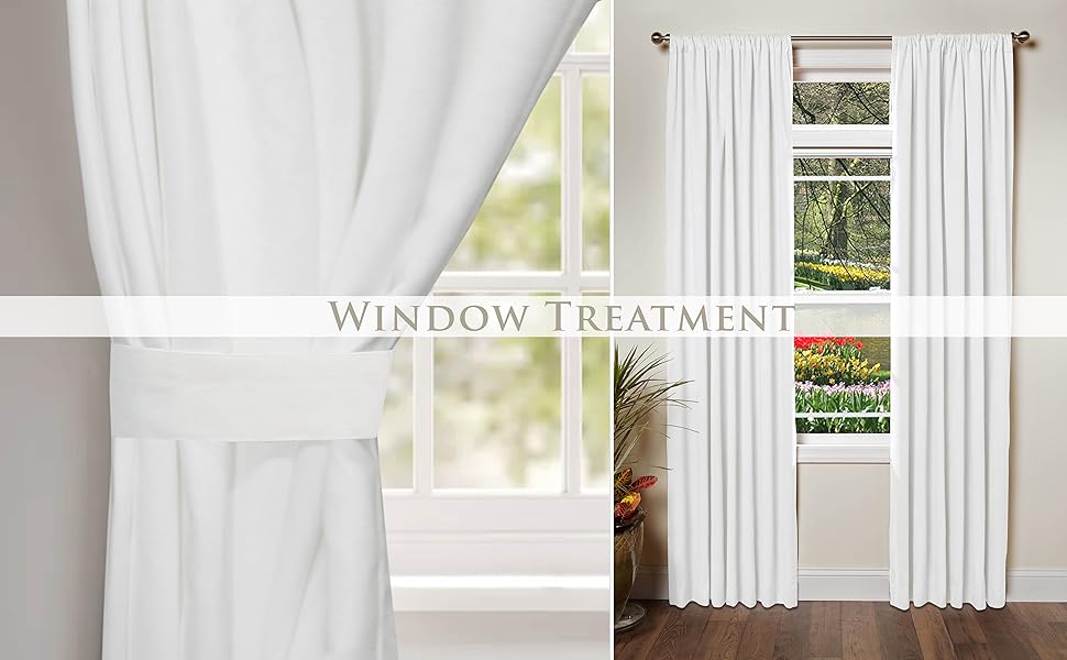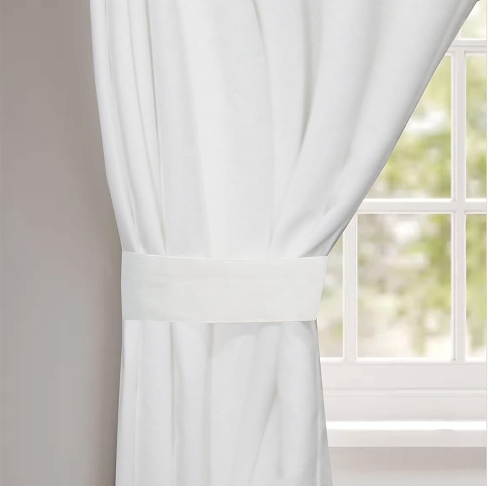 - CONTENTS: Package contains Two White Cotton Tab Top Curtain Panels. Two bonus tie-backs included.