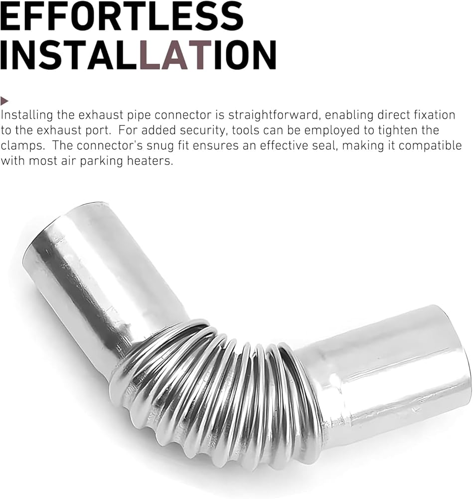 Universal Compatibility: This exhaust fitting is compatible with all kinds of vehicles, such as cars, SUVs, trucks, etc., and compatible with most air parking heaters. Easy to install, can be directly fixed to the exhaust port, the clamp supports manual screwing, with the basic tool can further strengthen the connection to ensure a tight fit.