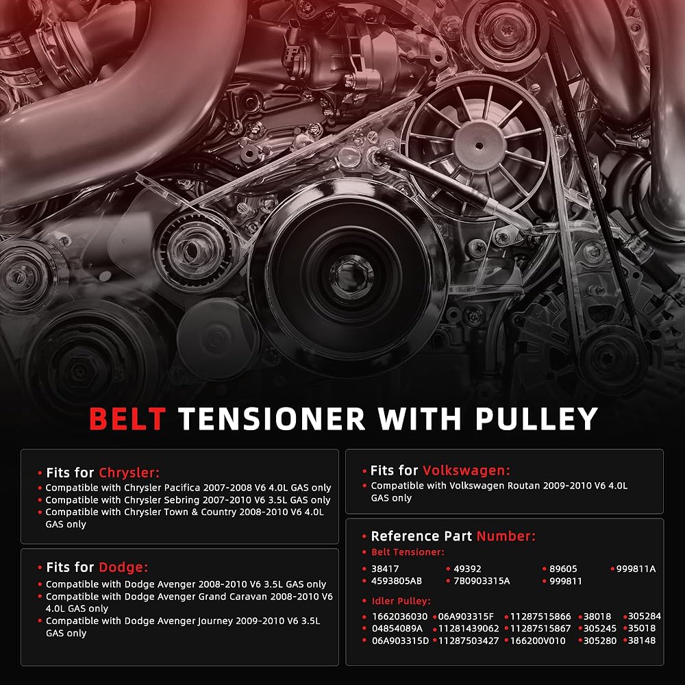 Vehicle Fitment:Tensioner Belt Set for GAS only, Fit for Dodge Avenger 2008-2010 V6 3.5L, for Avenger Grand Caravan 2008-2010 V6 4.0L, for Avenger Journey 2009-2010 V6 3.5L