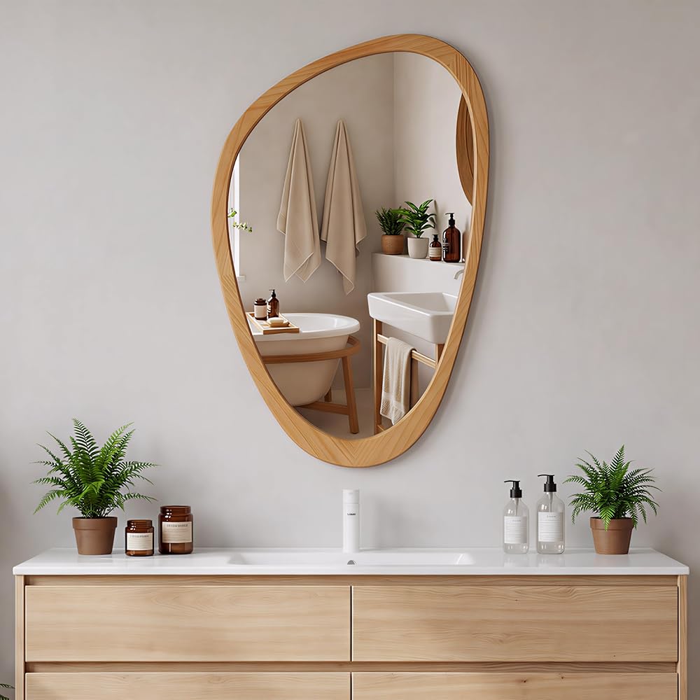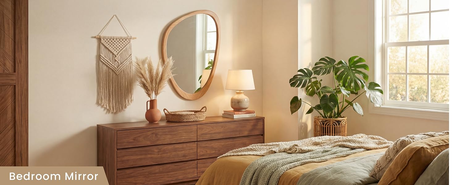 Versatile Accent for Multiple Spaces: This irregular shaped mirror works beautifully in bedrooms, living rooms, and entryways, and also adds character to bathrooms, above fireplaces, hallways, or console tables. Its abstract mirror silhouette brings balance and style without overpowering the space.