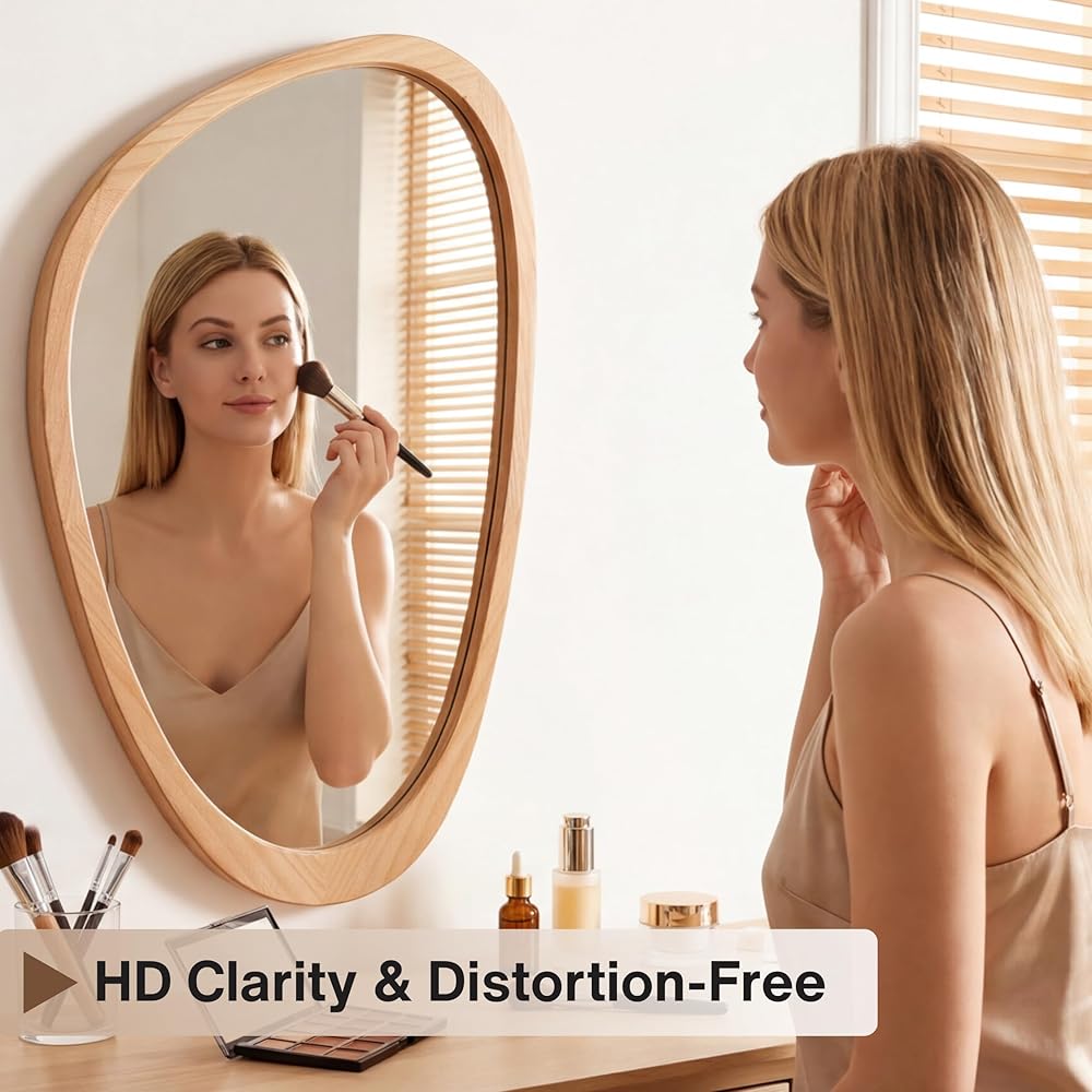 Clear, Distortion-Free Reflection: Made with high-quality tempered glass, this wood mirror offers a clean HD reflection without distortion. It reflects light naturally, helping rooms feel brighter and more open.