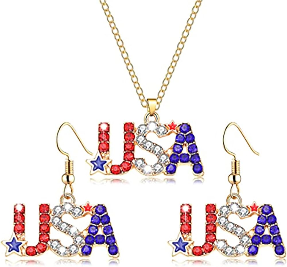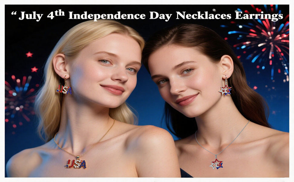 Patriotic jewelry set for women:The 18-inch necklace (with 2-inch extender) and lever-back earrings fit most sizes, while lightweight materials ensure all-day comfort.