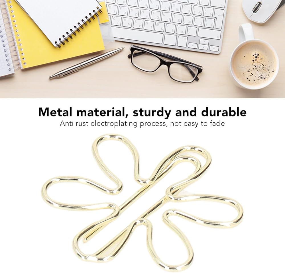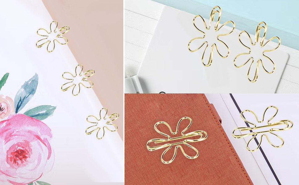 【LIGHTWEIGHT NON SLIP】Gold paper clips are lightweight and portable, , not easy to break, ensure long term use, suitable for document sorting.Flower shape paperclips are not easy to damage paper, increase slip , can be used as bookmarks, etc
