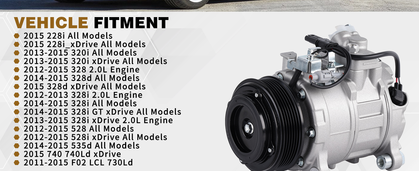 64529216466 Air Conditioner AC Compressor with Clutch Compatible with BMW X5 320i 328i 428i 528i 535i 228i 328d 535d 740Ld GT xDrive Gran Coupe 64529399059,64529330825