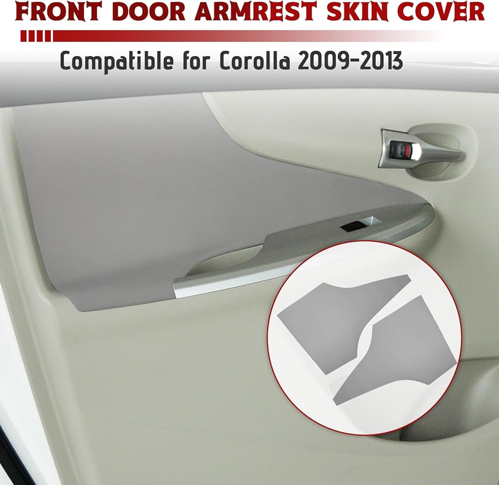 Compatible with Front Door Panels Armrest Cover for Toyota Corolla 2009-2013 Leather Left & Right Front Door Armrest Trim with Installation Tool 2PCS Gray (Leather Only)