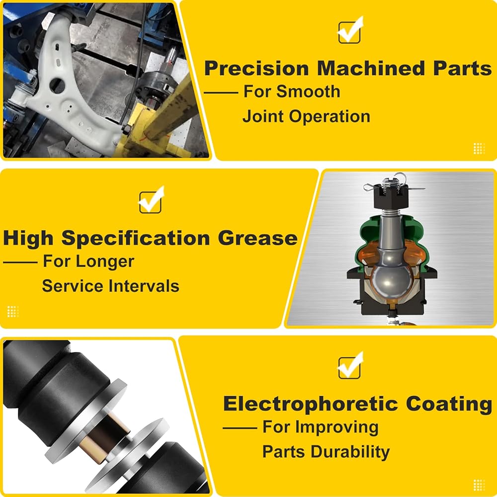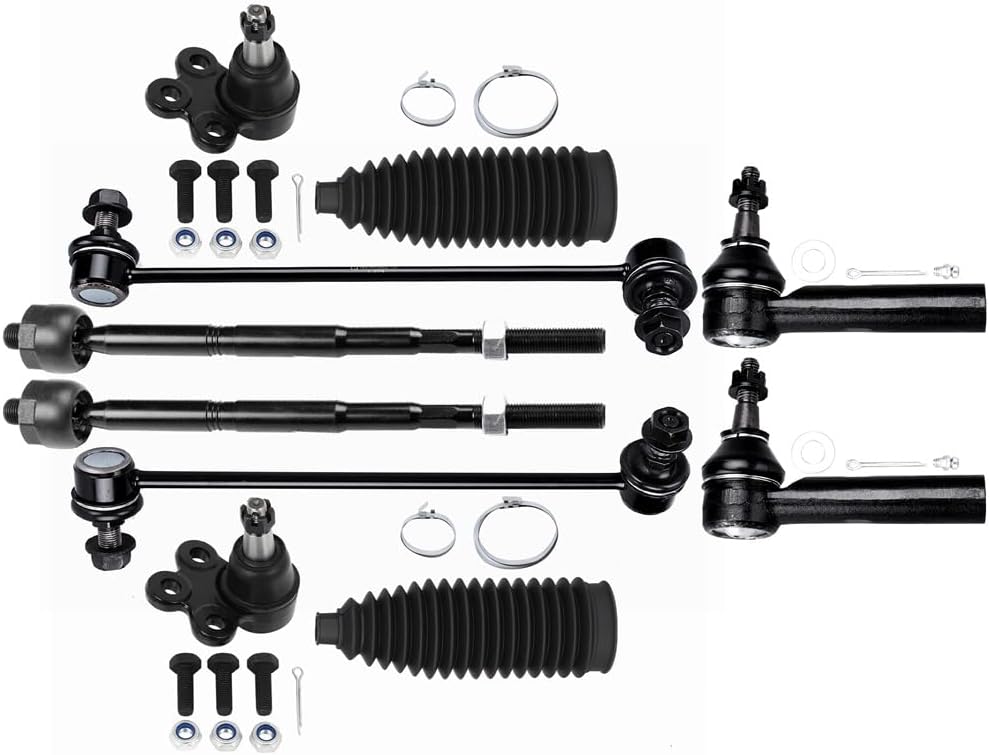 10-PC Set Item Details: 2 x Front Outer Tie Rod End, 2 x Front Inner Tie Rod End, 2 x Front Lower Ball Joint, 1 x Front Sway Bar End Link, 1 x Front Sway Bar End Link, 2 x Front Steering Rack Boot